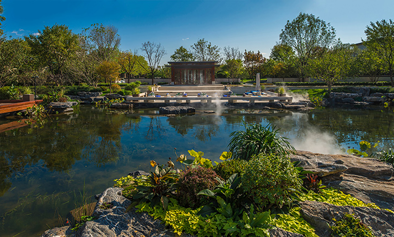 以筑夢東方境,情繞水云庭為設計主題,象法真山真水形意,現(xiàn)代與古典相交融,人文藝術共饗薈萃。打造檀園簡雅、寫意、韻味新中式園林景觀。