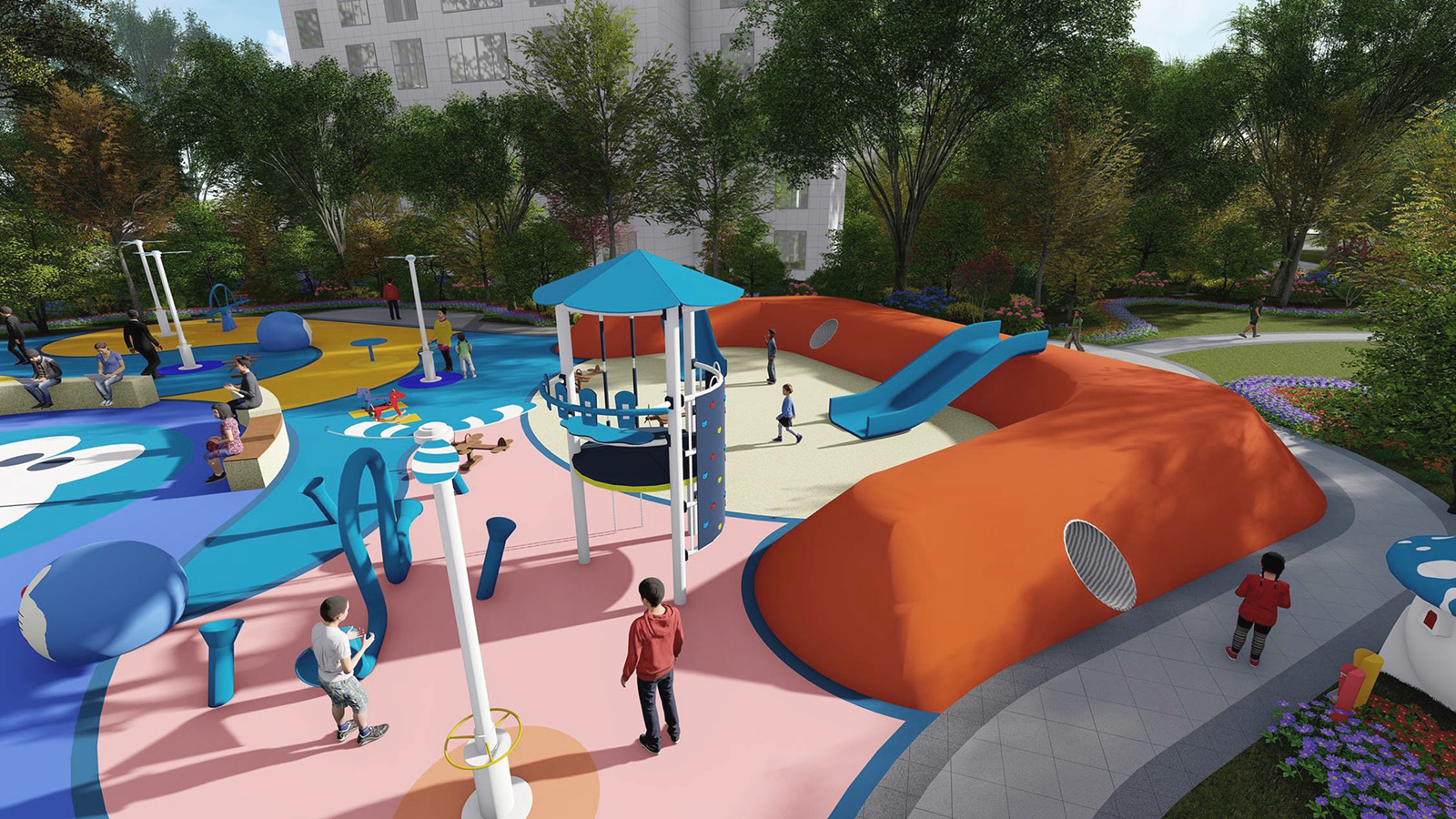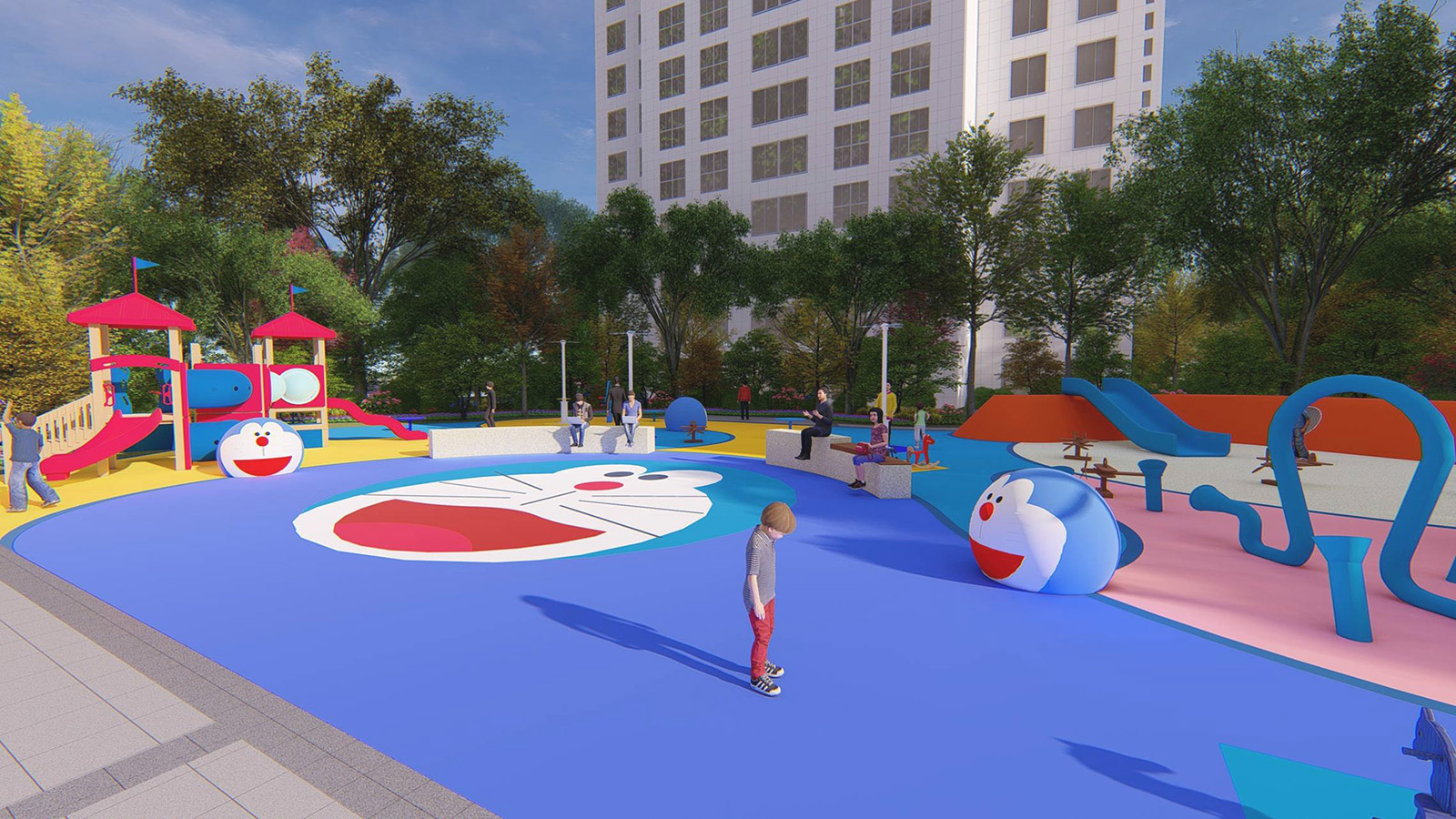 兒童活動區(qū)以五感體驗為設計理念,融入經(jīng)典卡通形象“哆啦A夢” 為設計主題,通過新穎的互動性設計充分調(diào)動兒童的聽覺、視覺、味覺、嗅覺、觸覺體驗,使兒童獲得獨特的感官體驗的同時,童夢童享,啟發(fā)兒童想象力、創(chuàng)造力,并為整個家庭創(chuàng)造一個寓教于樂的優(yōu)美園林空間環(huán)境。
