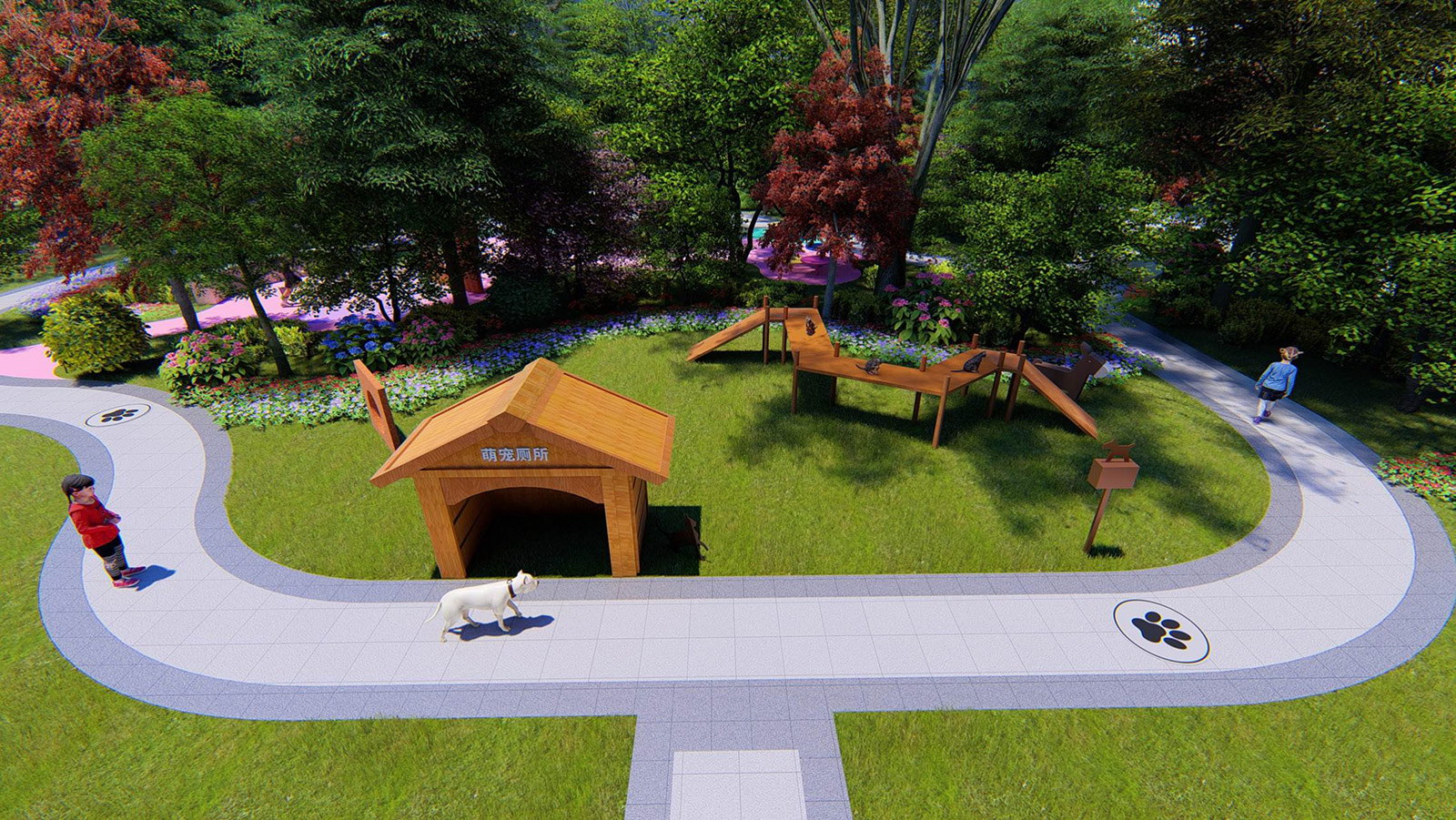 萌寵樂園組團綠地內(nèi)布置萌寵步道、交友嬉戲場地,方便業(yè)主走出家門,日常散步遛狗的生活需要,布置寵物廁所(沙坑)、和糞便清理袋取用裝置、洗手池等設施,便于主人在訓練寵物后使用,保證周邊的衛(wèi)生安全,