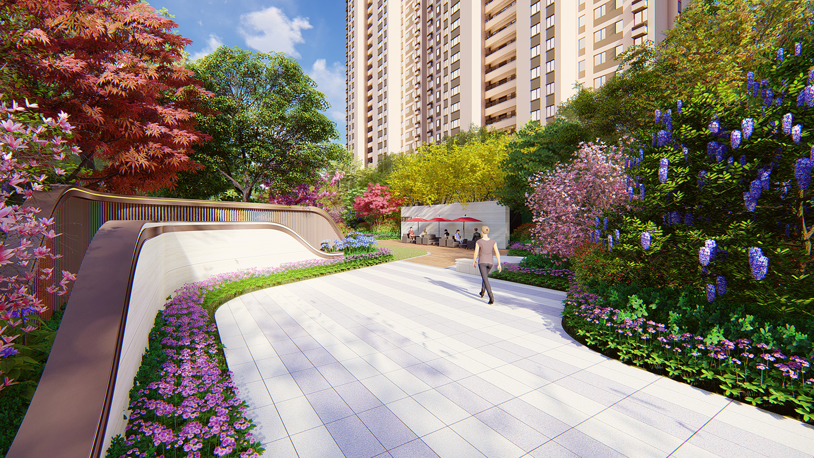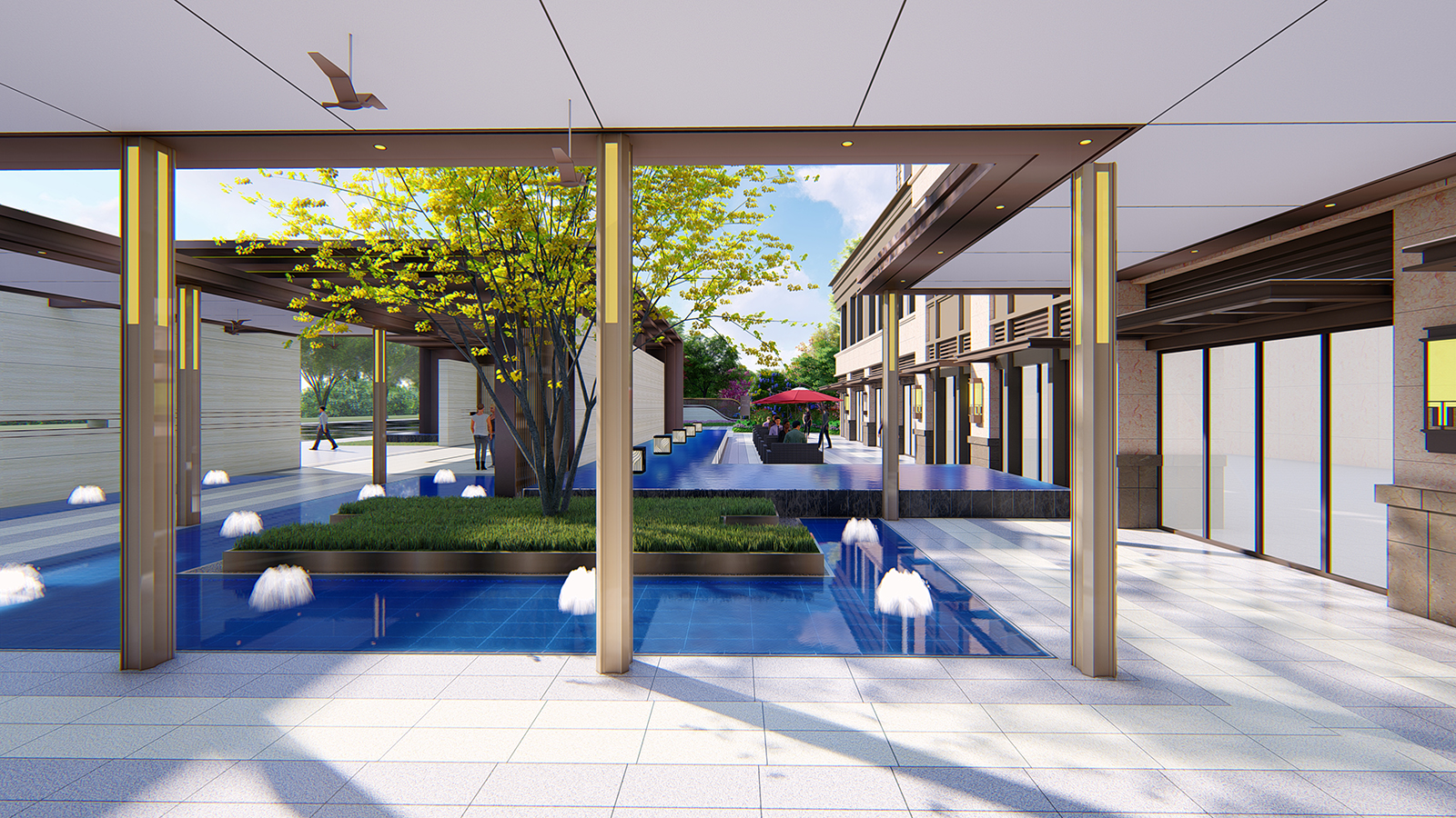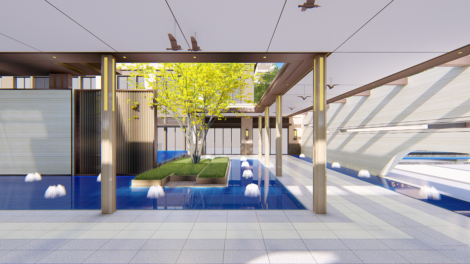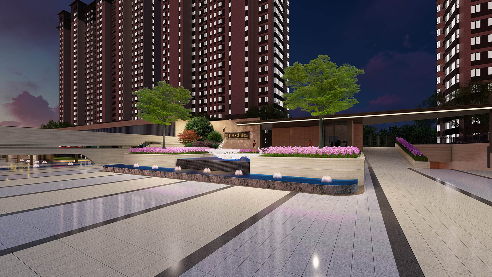 迎賓廣場平坦開闊,疊水水景與臺(tái)階組合現(xiàn)代、精致、優(yōu)雅,水景布置有鵲歸巢主題雕塑,禮迎業(yè)主歸家,彰顯小區(qū)尊享品質(zhì)。