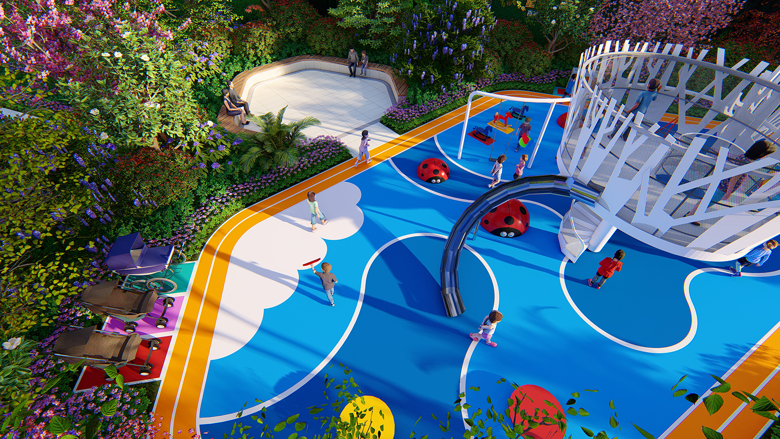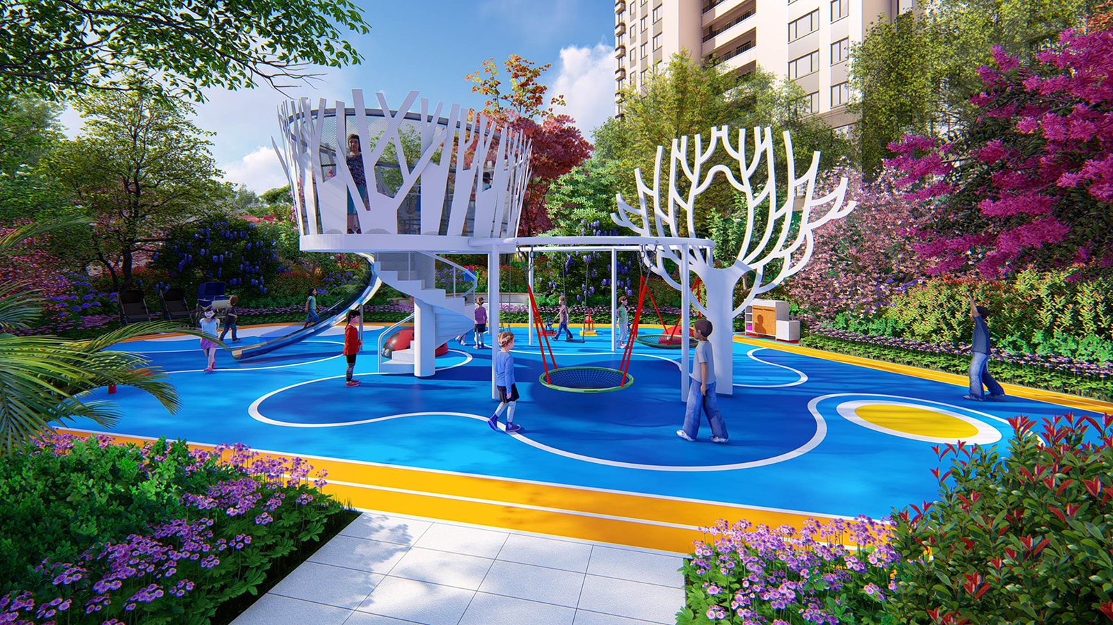 兒童樂園以親子同樂,喜鵲和鳴為意境,設(shè)置兒童體驗(yàn)熱點(diǎn),同時(shí)布置家長休閑看護(hù)區(qū)與洽談區(qū),園路旁的喬木夾道種植,豐富的綠化層次,都能增強(qiáng)客戶對(duì)項(xiàng)目品質(zhì)更加直觀的感受。
