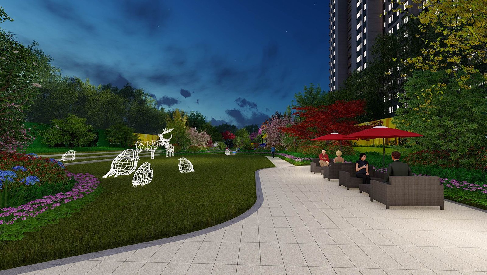 置業(yè)顧問引導(dǎo)客戶到達(dá)休閑平臺(tái),空間開闊,綠植分布周圍,對(duì)景草階現(xiàn)代新穎,草坪上散布的藝術(shù)裝置增添景觀亮點(diǎn),為客戶創(chuàng)造心曠神怡的身心感受,品味整個(gè)示范區(qū)的優(yōu)雅品質(zhì)。