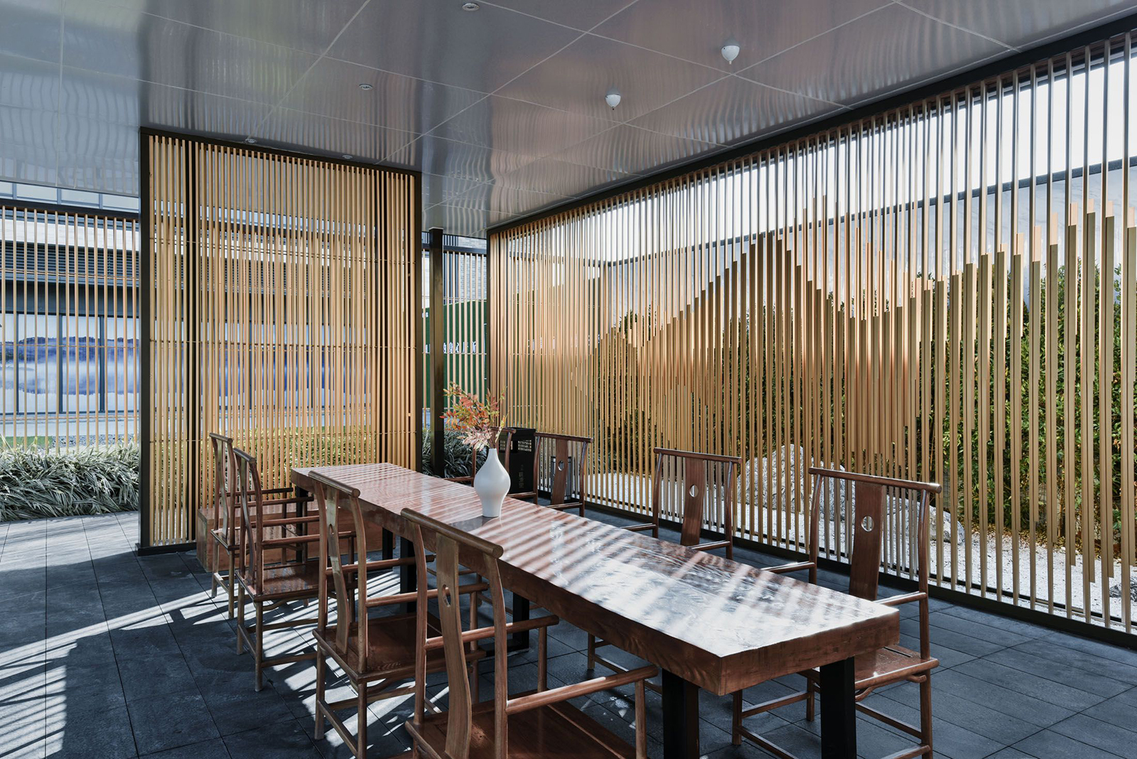 “L形”廊架給予客戶無形的引導(dǎo),帶領(lǐng)客戶進(jìn)入到更深層次空間,廊架頂板布置喜鵲藝術(shù)裝置,以雀幸喜歸為主題,引導(dǎo)賓客進(jìn)入售樓部。